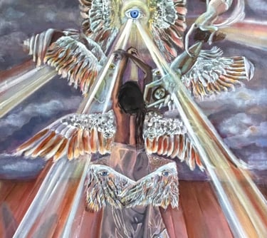 Sky David is an artist, veteran, physical therapist and inventor. Sky has built radios and clocks since before he could read. After his time serving in Vietnam, he decided he wanted to do good with his hands. His soft and delicate art is paired with "Sky Heart" an invention equipped with a quantum chip and specialized metals to create a heart field in your home space.