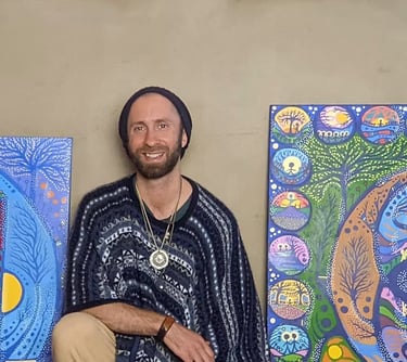 My artwork is influenced by many lineages of sacred and archaic art from around the world - from the mandalas of Tibetan Buddhism, to the stained-glass of Medieval Christianity, to the sand-paintings of the Navajo Indigenous traditions, to the ancient Aboriginal rock art, and even to the Egyptian Hieroglyphs.